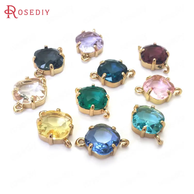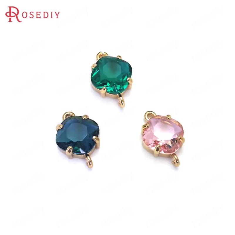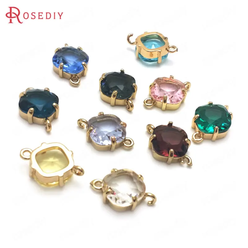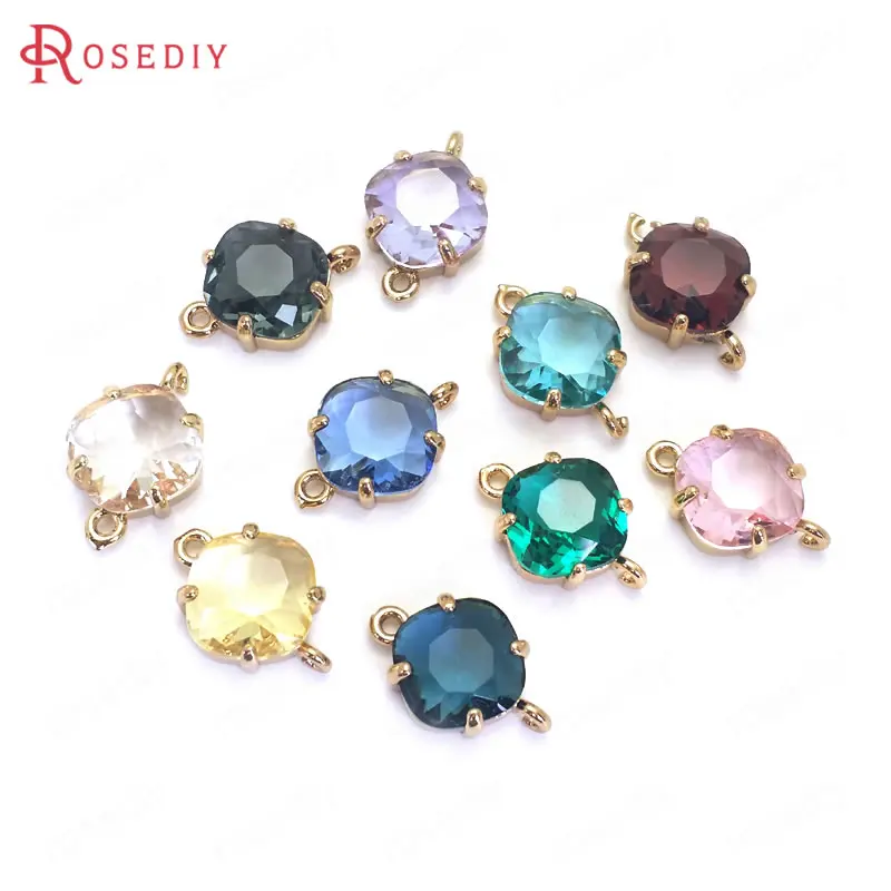 10 шт. 17x11 мм 24 к цвет шампанского золото латунь и стекло 2 отверстия квадратные шармы Подвески Diy Ювелирные изделия Аксессуары