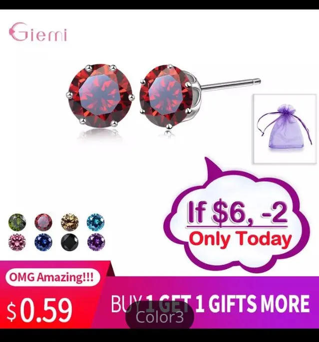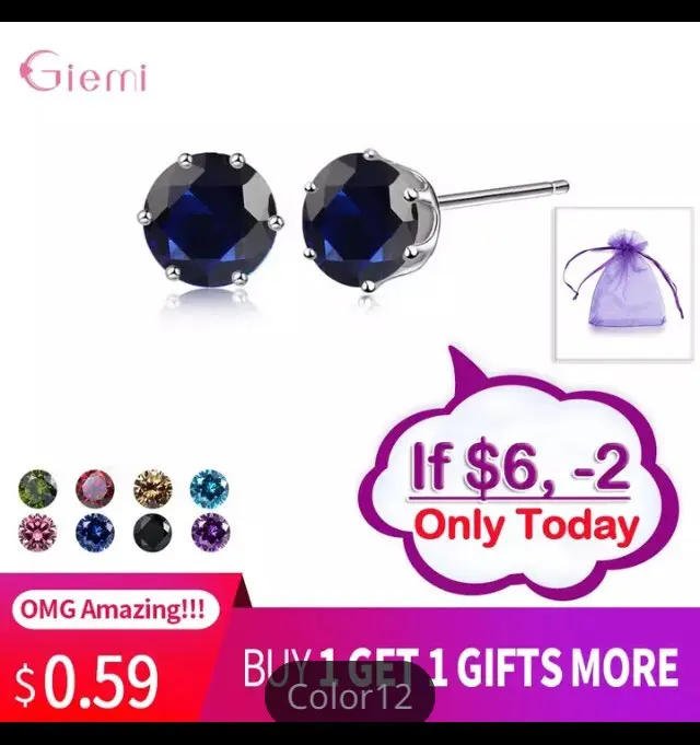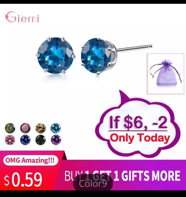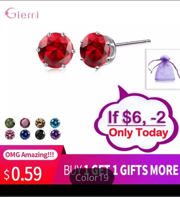Серьги-гвоздики из стерлингового серебра 925 пробы с фианитом 6 мм, бижутерия в подарок для женщин, 20 цветов
