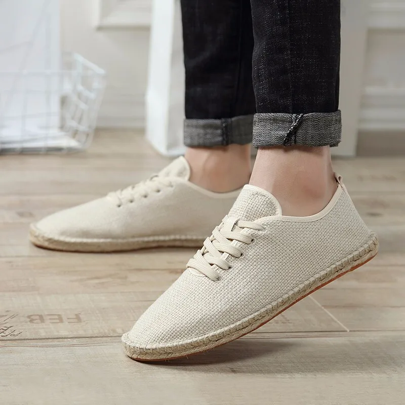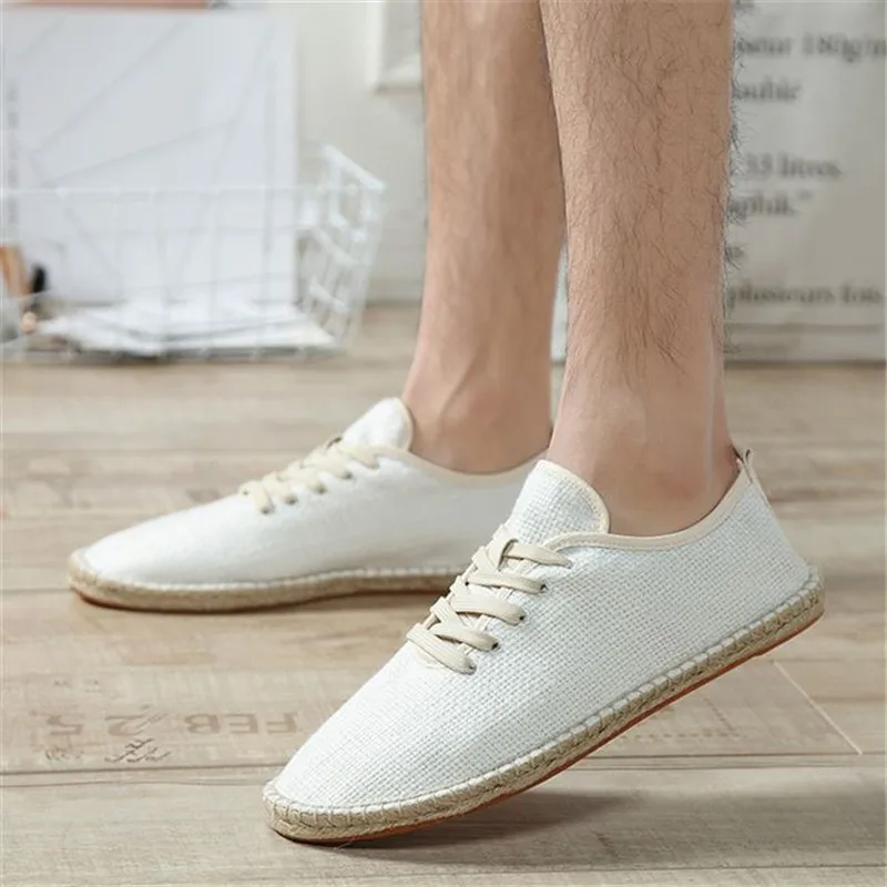 Мужские парусиновые кроссовки, из льна и соломы, 2019, ручная работа, шитье старой Пекинской ткани, размера плюс, 45, мужские туфли на плоской подошве