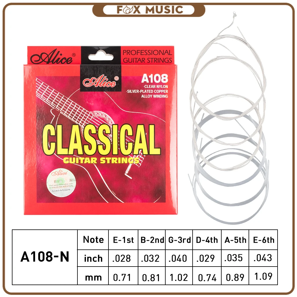 Набор струн для гитары Alice A108, 6 струн, обычное натяжение из чистого нейлона и Посеребренного медного сплава