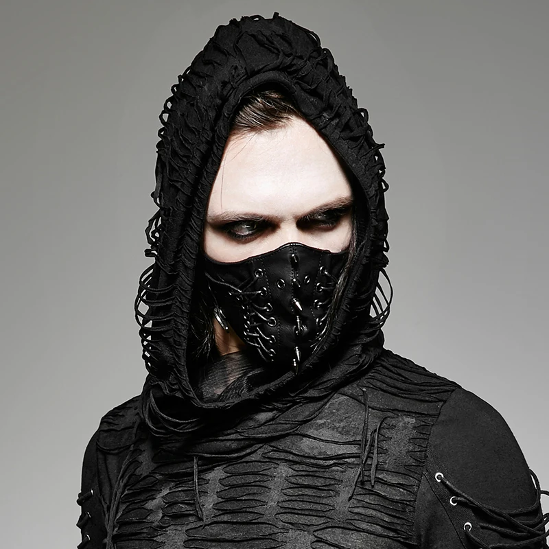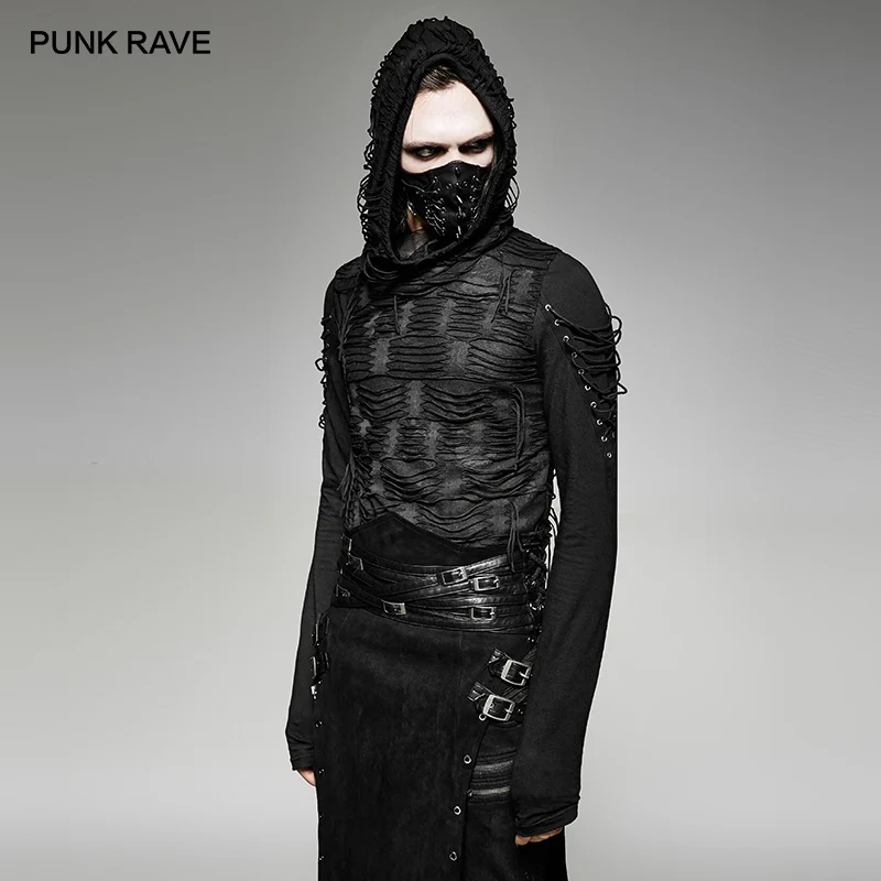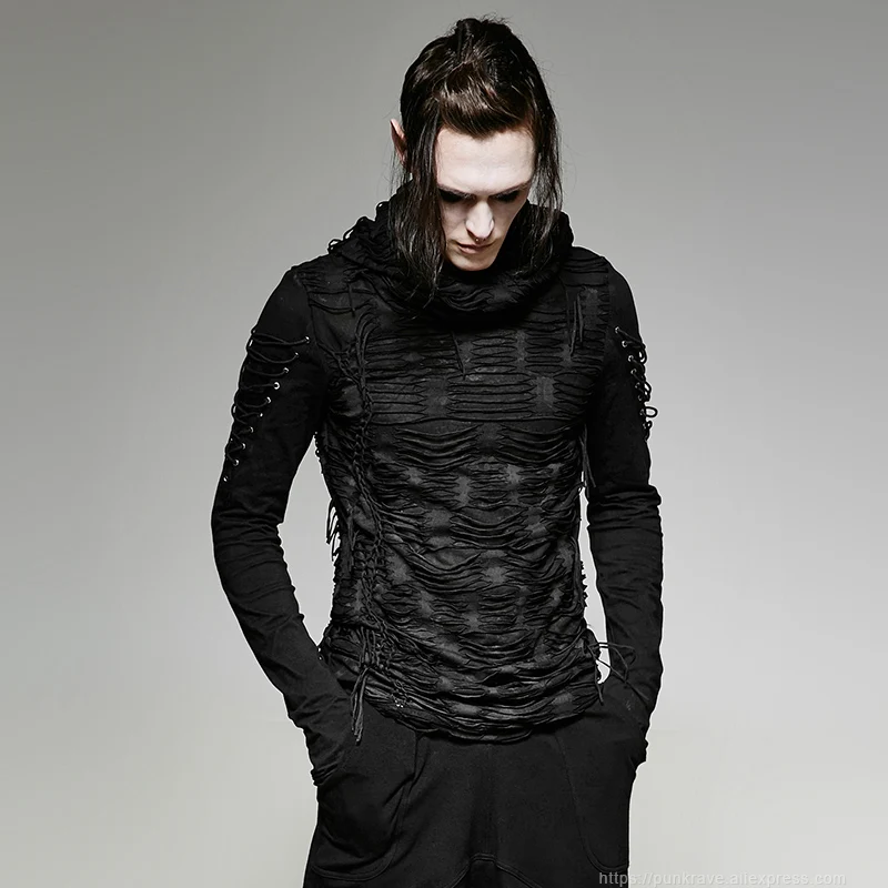 Мужская футболка с длинным рукавом в стиле панк-рок, Повседневная Толстовка с капюшоном в готическом стиле