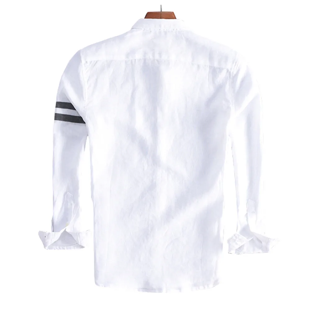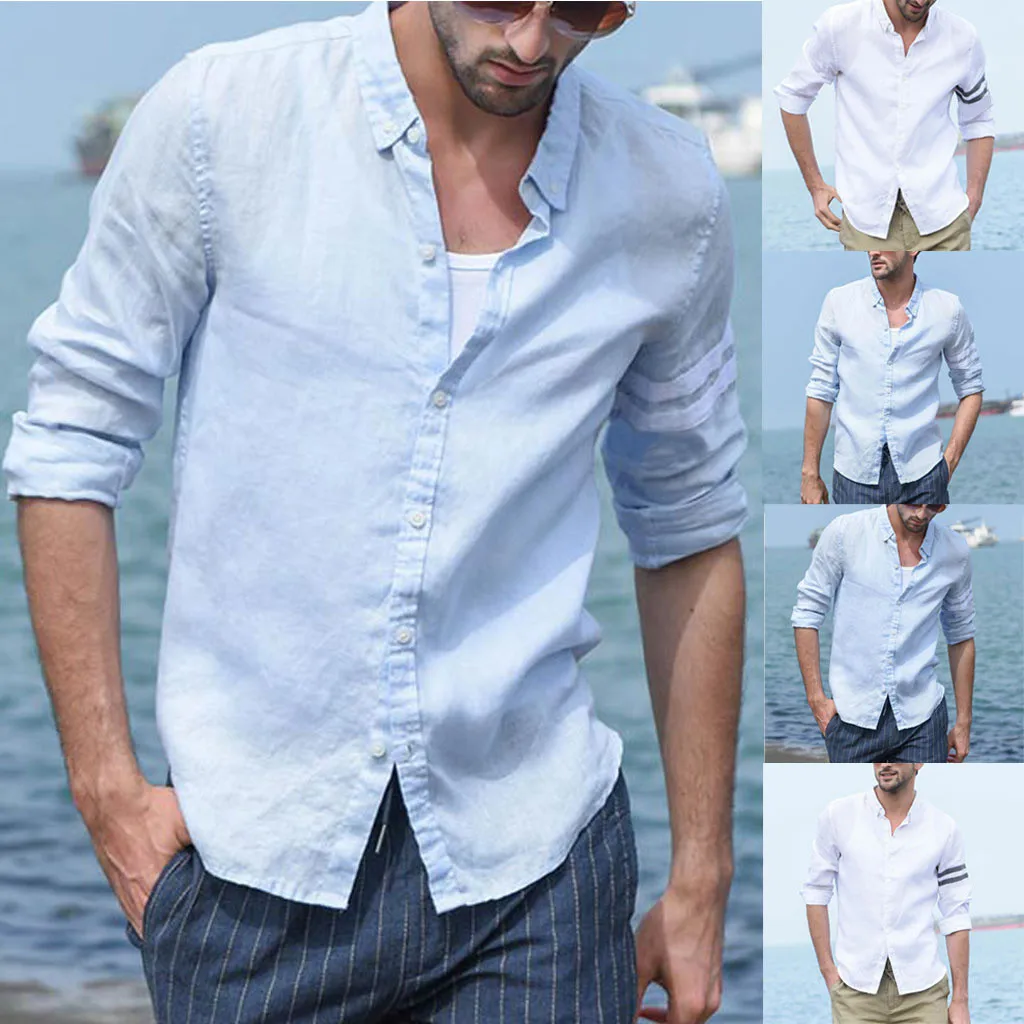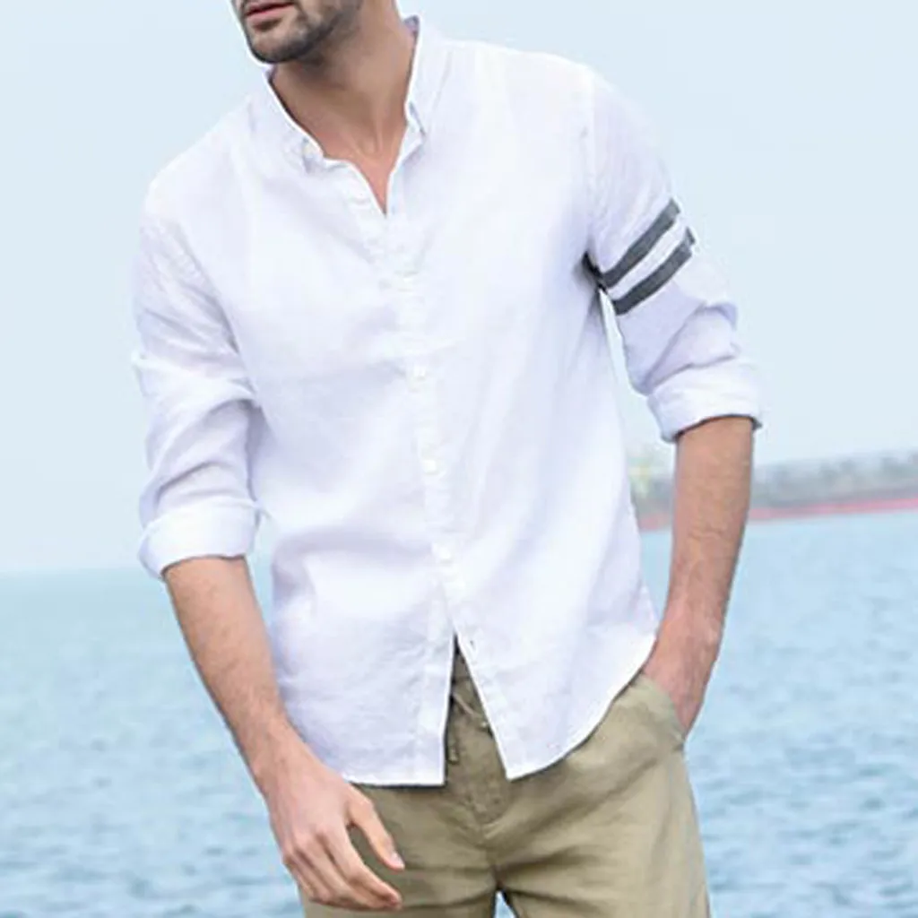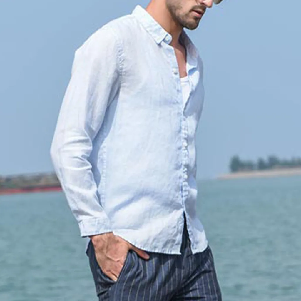 Мужская рубашка, Мужская винтажная однотонная льняная Однотонная рубашка с длинным рукавом, ретро Рубашки, Топы, блузки, рубашки, мужские повседневные Рубашки, Топы на каждый день