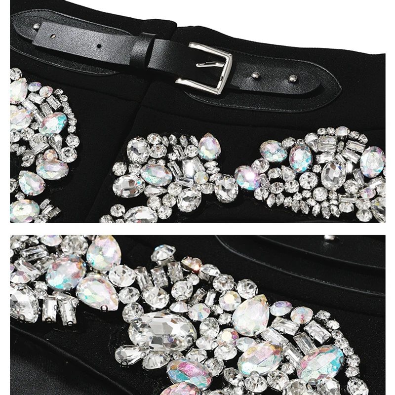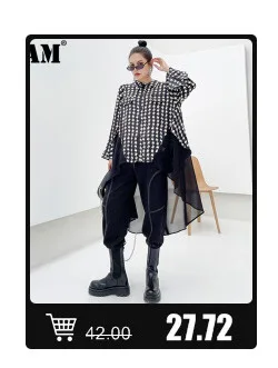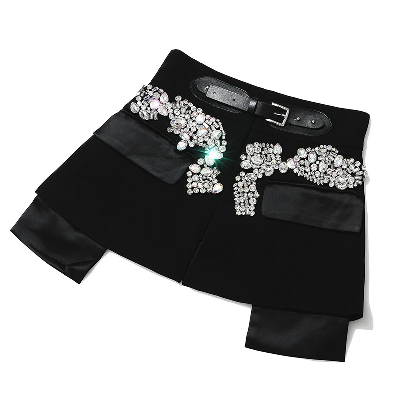 EAM Новинка 2022 года; Сезон весна-осень; Черная юбка с высокой талией, украшенная бусинами; Модная женская короткая юбка; JY758