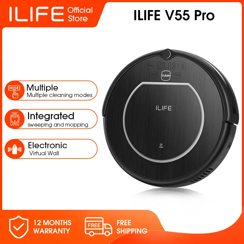 ILIFE V55 Pro пылесос робот развертки влажная Швабра виртуальная стена планированная Чистка Мощное всасывание для домашних животных волос и жесткий пол