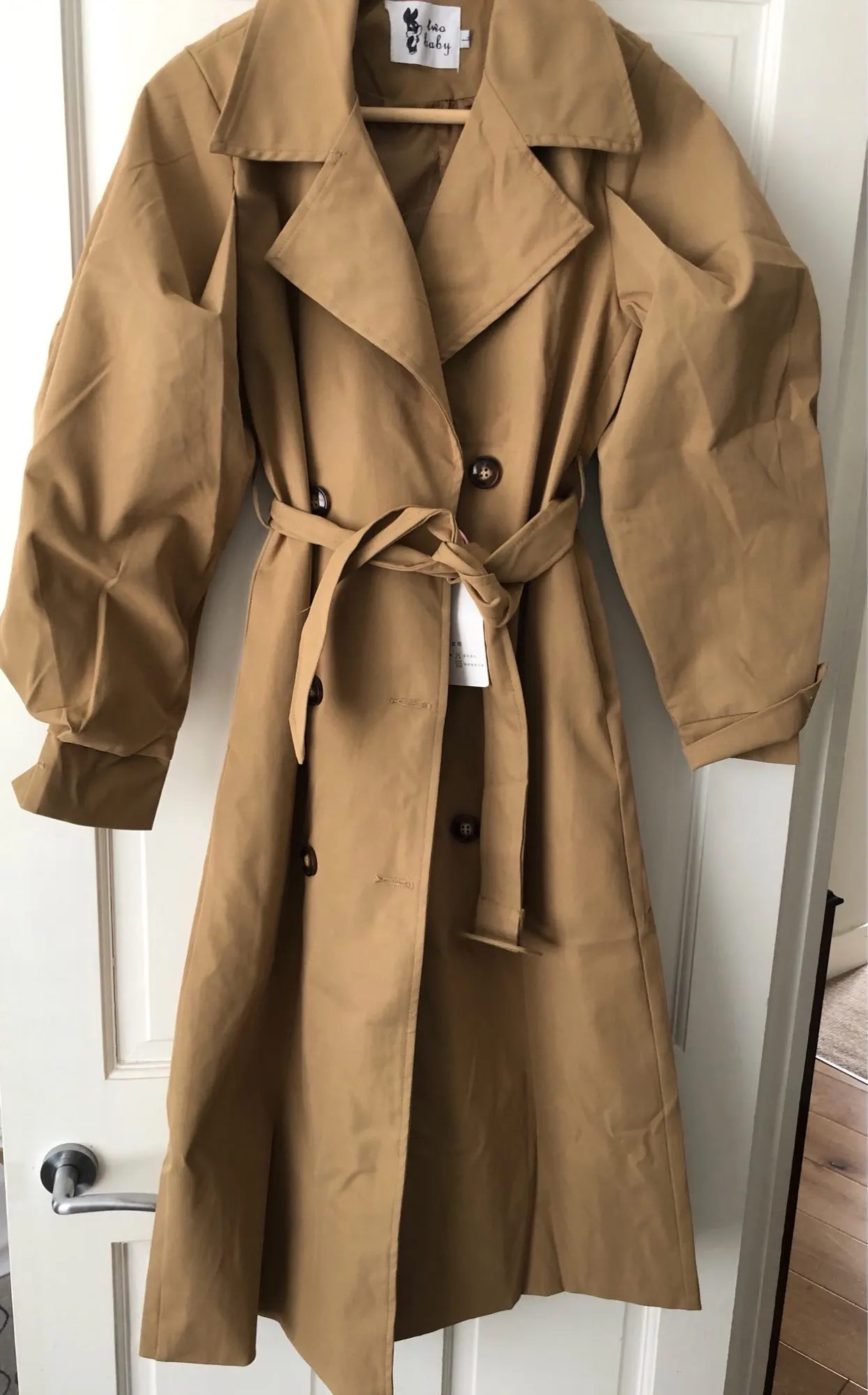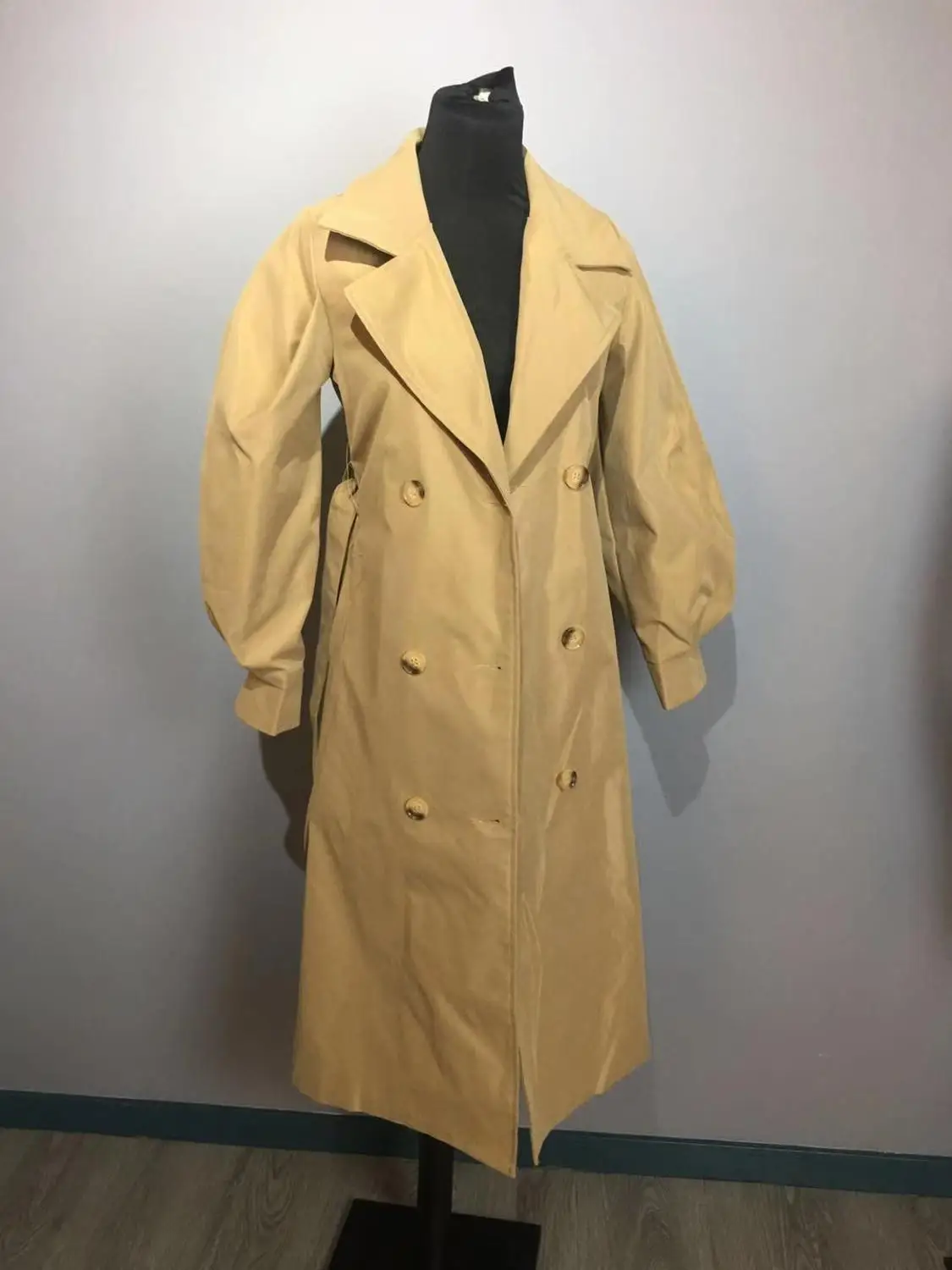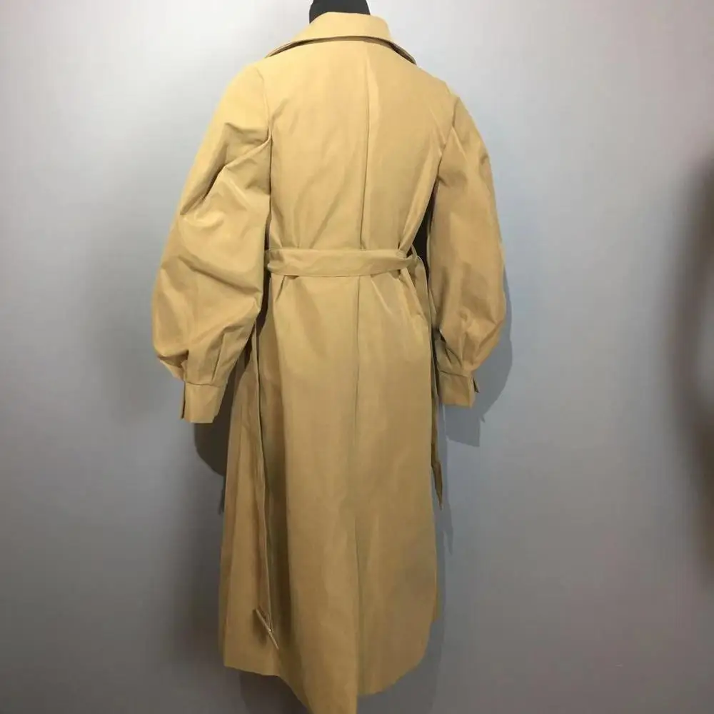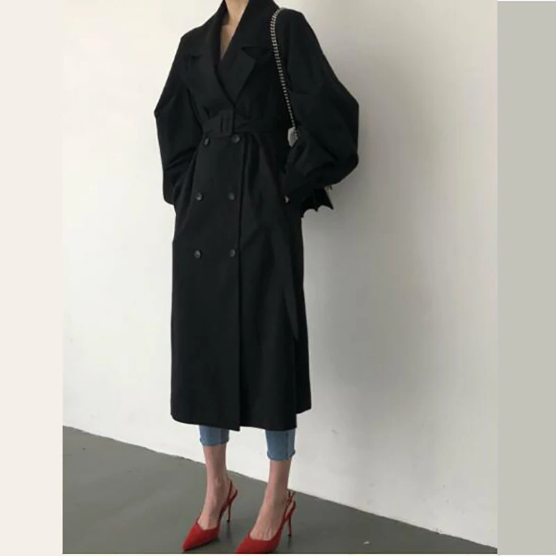 Женское длинное пальто-Пыльник в британском стиле, черное Свободное пальто с регулируемой талией, с пышными рукавами, на осень