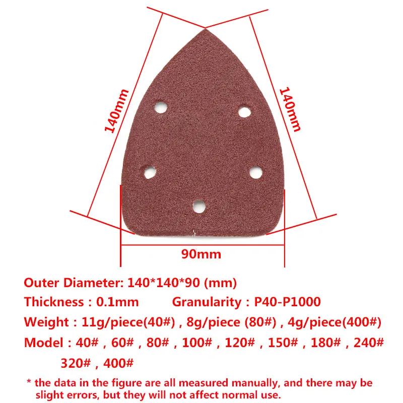 10 шт. 140x90 мм само-клейкая наждачная бумага Треугольники шлифовальный станок, зернистостью 40-400 наждачной бумагой шлифовальный диск абразивный инструмент для полировки дерева