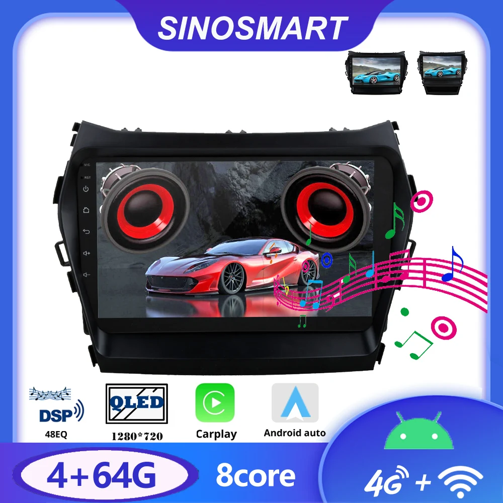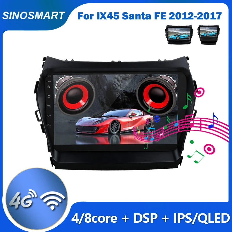 Sinosmart автомобильный радиоприемник с навигацией GPS для Hyundai IX45 Android Santa Fe 2din 2.5D QLED экран 8 ядер, DSP 48EQ