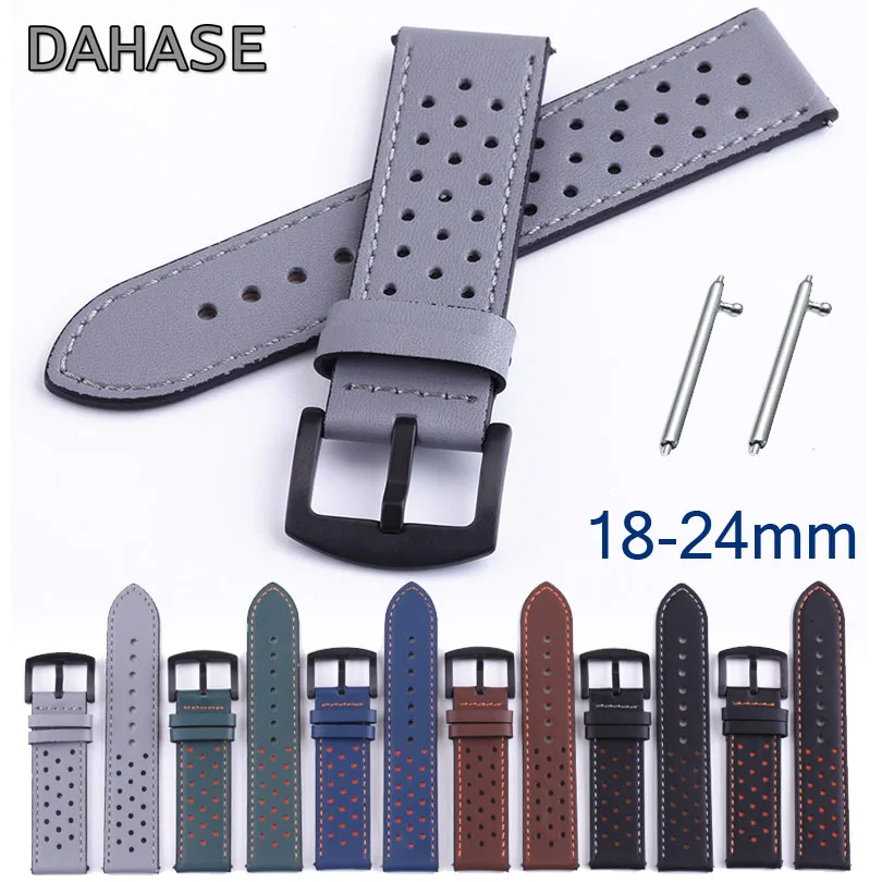 Ремешок сменный из натуральной кожи для наручных часов, браслет с отверстием сливы для Samsung Huawei Amazfit w Pins, 18 мм 20 мм 22 мм 24 мм