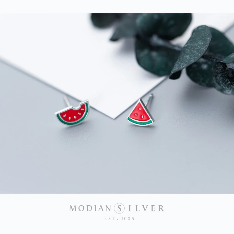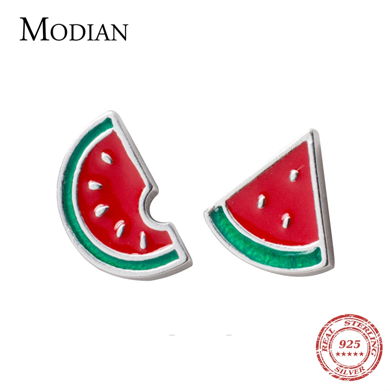 Modian 2019 Горячая продажа пляж свежий арбуз серьги гвоздики стерлингового серебра 925 эмаль милые серьги для женщин ювелирные украшения подарок