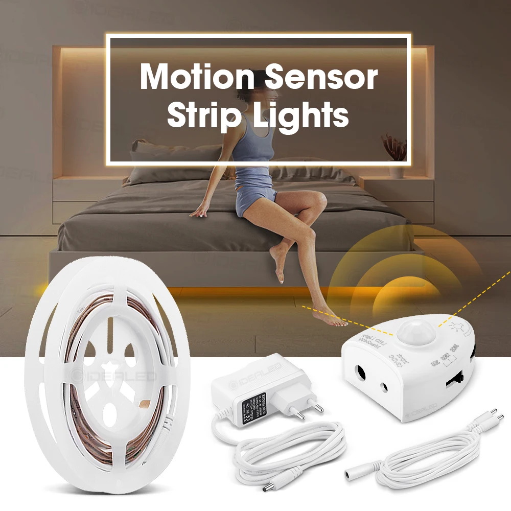 Датчик движения затемняющий светильник, лампа для кровати под шкафом, Ночной светильник, гибкая светодиодная лента 12 В, лента 110 В 220 В, США, ЕС, источник питания