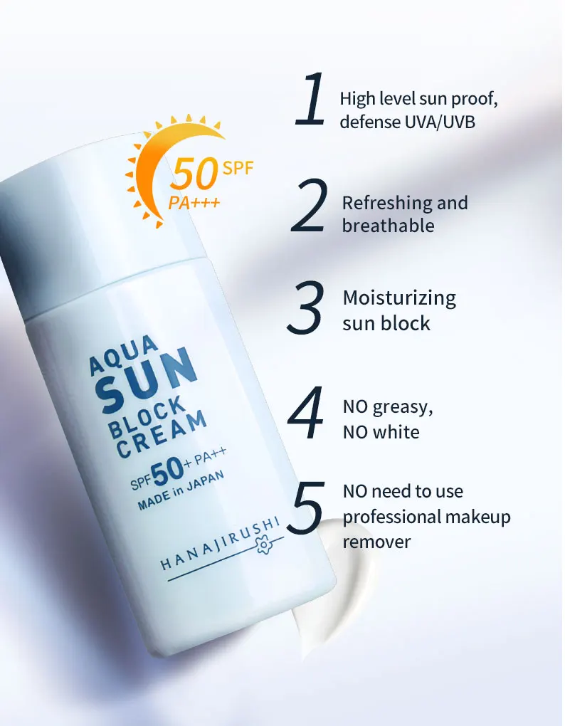 Солнцезащитный экран HANAJIRUSHI Aqua Sun Block SPF 50 PA ++ отбеливающий сверхсветильник водостойкий крем-спрей spf50 60 мл