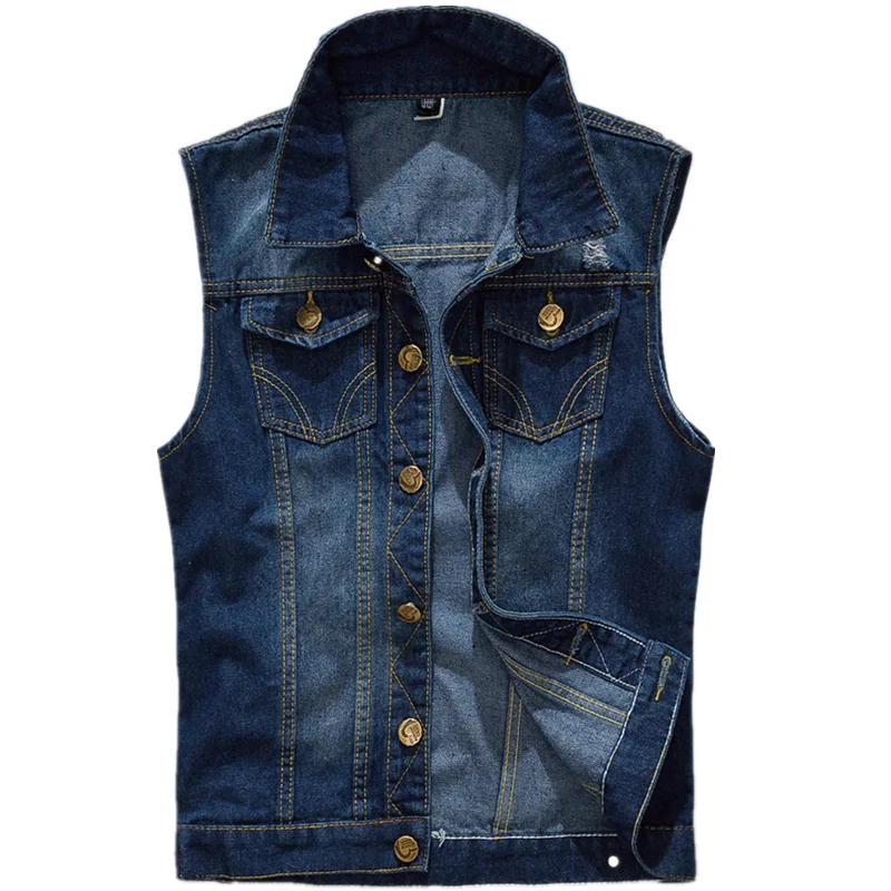 Джинсовый жилет для мужчин, однотонный Повседневный безрукавка для подростков, облегающая куртка из денима, ковбойский жилет