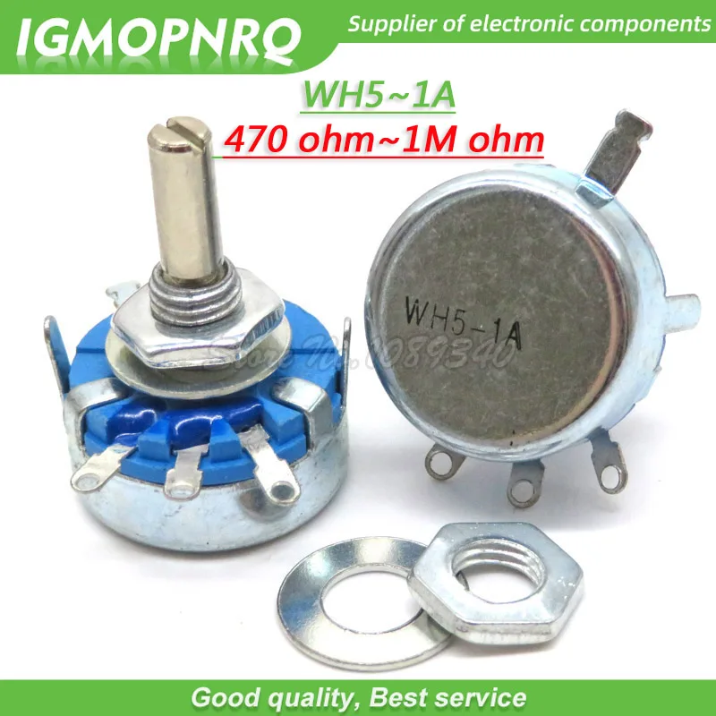 2 шт., карбоновый потенциометр WH5, 1k 2k 10k 47k 4k7 470r 100k 470k 220k 1k5 22k 1m ohm 3-клеммы, круглый вал, поворотный конический потенциометр