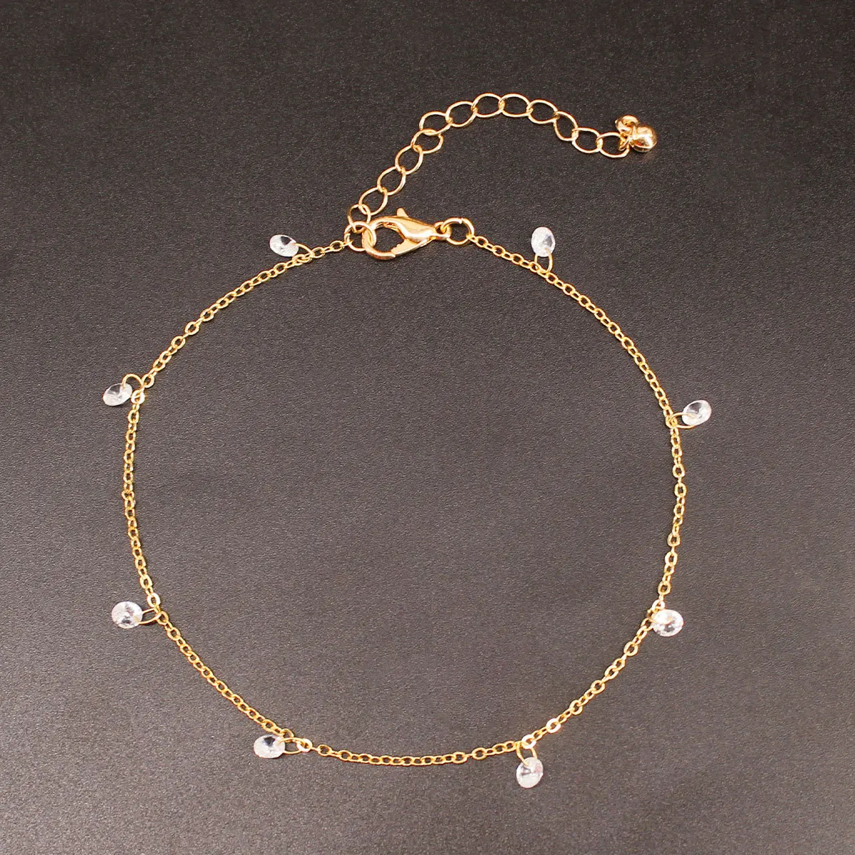 Женский ножной браслет K232, пляжный анклет в богемном стиле с подвеской-кристаллом, простая металлическая цепь, ювелирные изделия