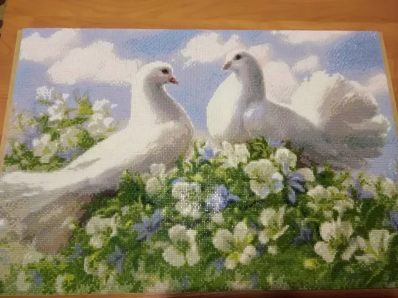 Алмазная вышивка с изображением голубей и животных