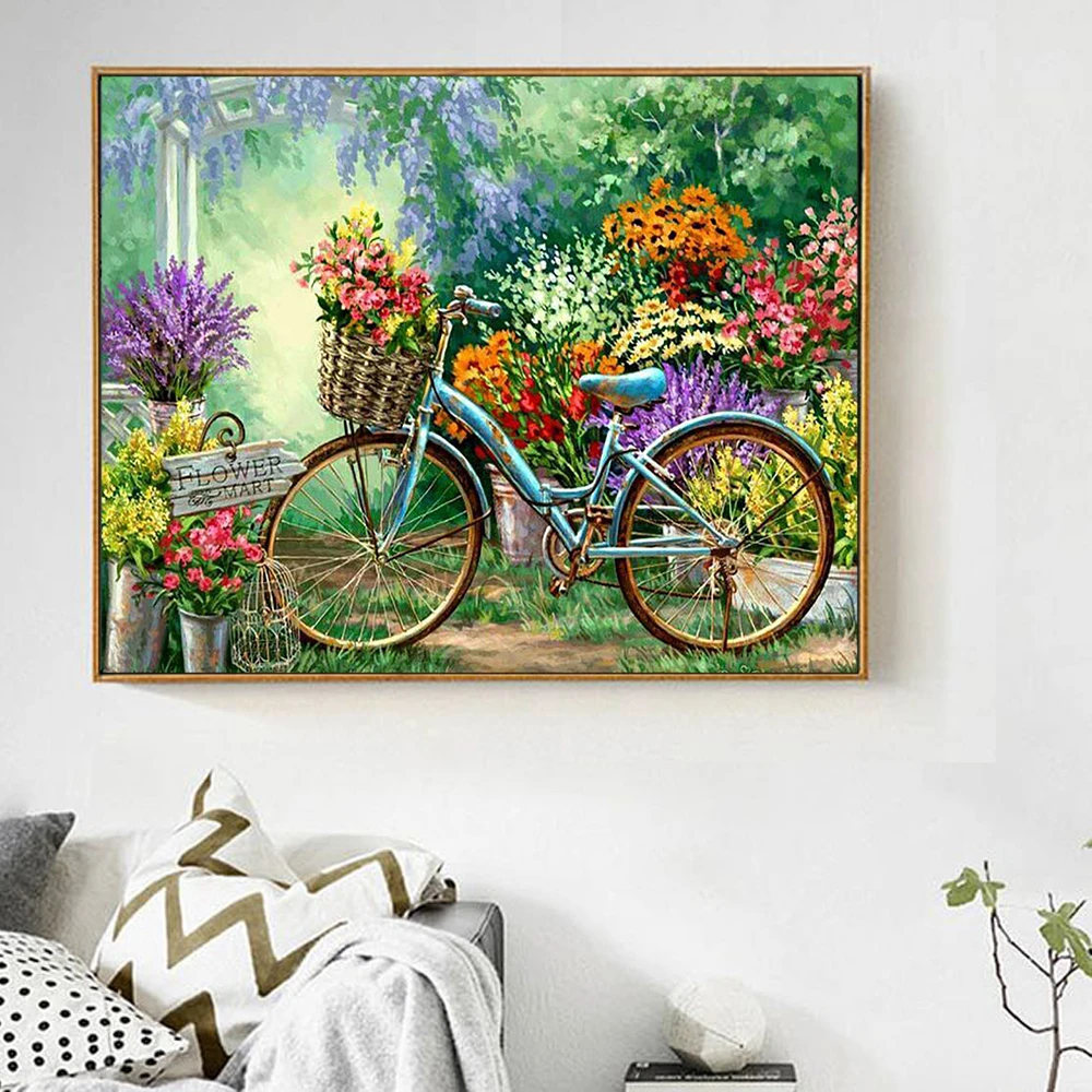 Алмазная живопись с изображением пейзажа, цветов, вышивка крестиком, 5D алмазная вышивка, пейзаж, велосипед, мозаика, стразы, домашний декор