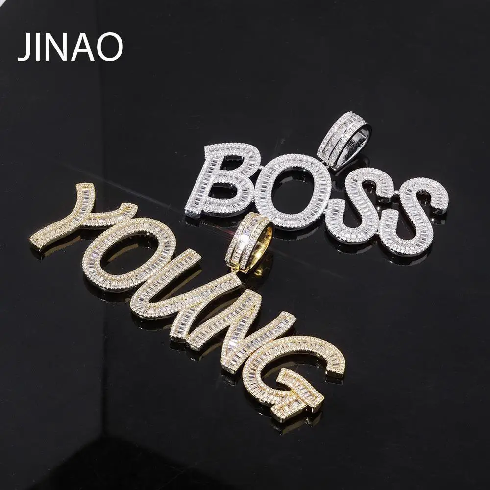 Пользовательское имя багет льдом цепи буквы ожерелья с подвесками для мужчин's Подвески Циркон в стиле хип-хоп, ювелирное изделие с цвета: золотистый, серебристый теннис цепи