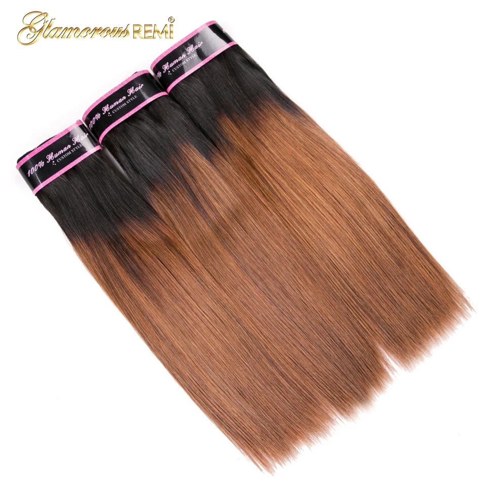 Эффектом деграде (переход от темного к бразильские волосы прямые 1B30 коричневые натуральные кудрявые пучки волос с закрытием два тона Волосы Remy уток волос для наращивания 10 до 26 дюймов
