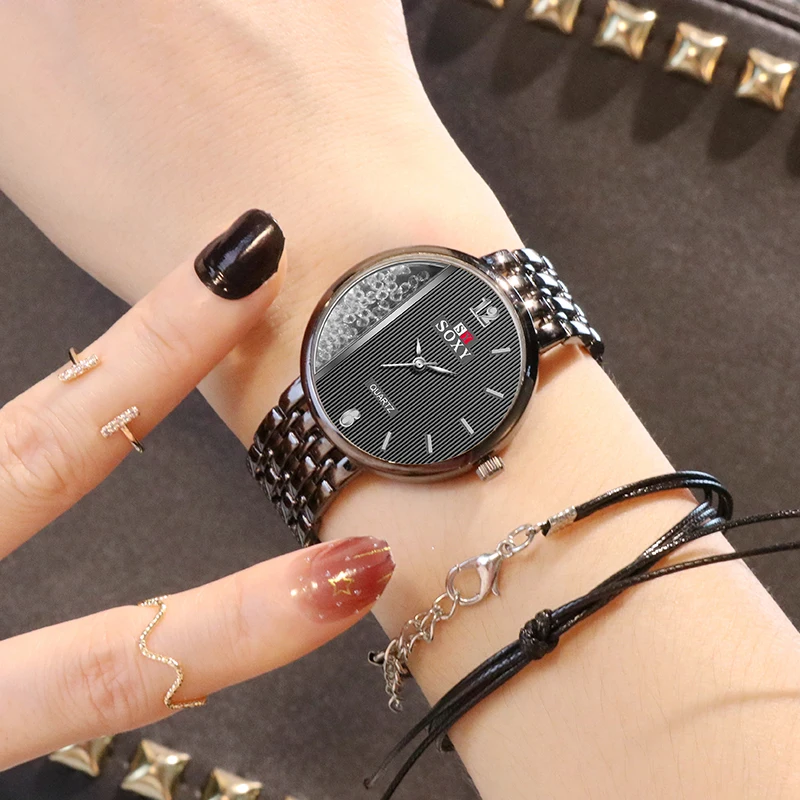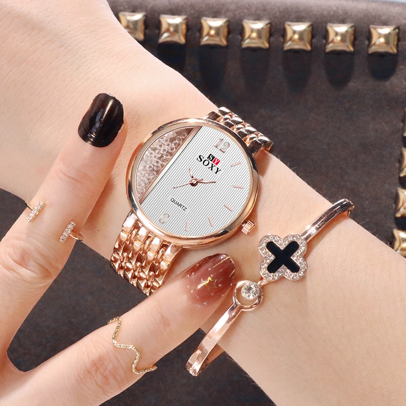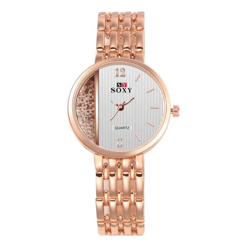 Женские кварцевые часы SOXY, розовое золото с бриллиантами, кварцевые наручные часы, 2019
