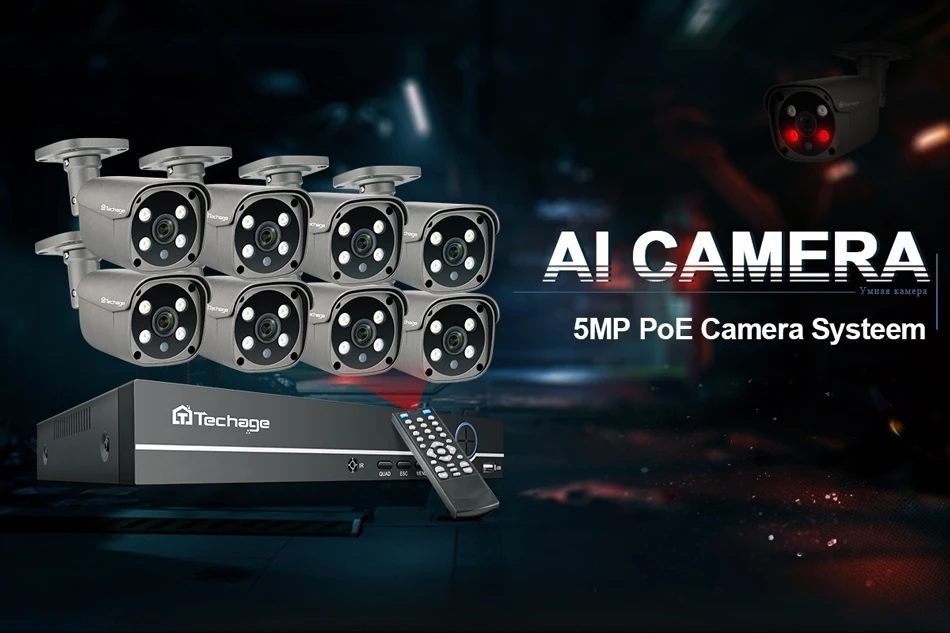 Система видеонаблюдения Techage, 8 каналов, 5 МП, HD, POE, NVR, двустороннее аудио, ии, распознавание лица, комплект наружных IP-камер видеонаблюдения