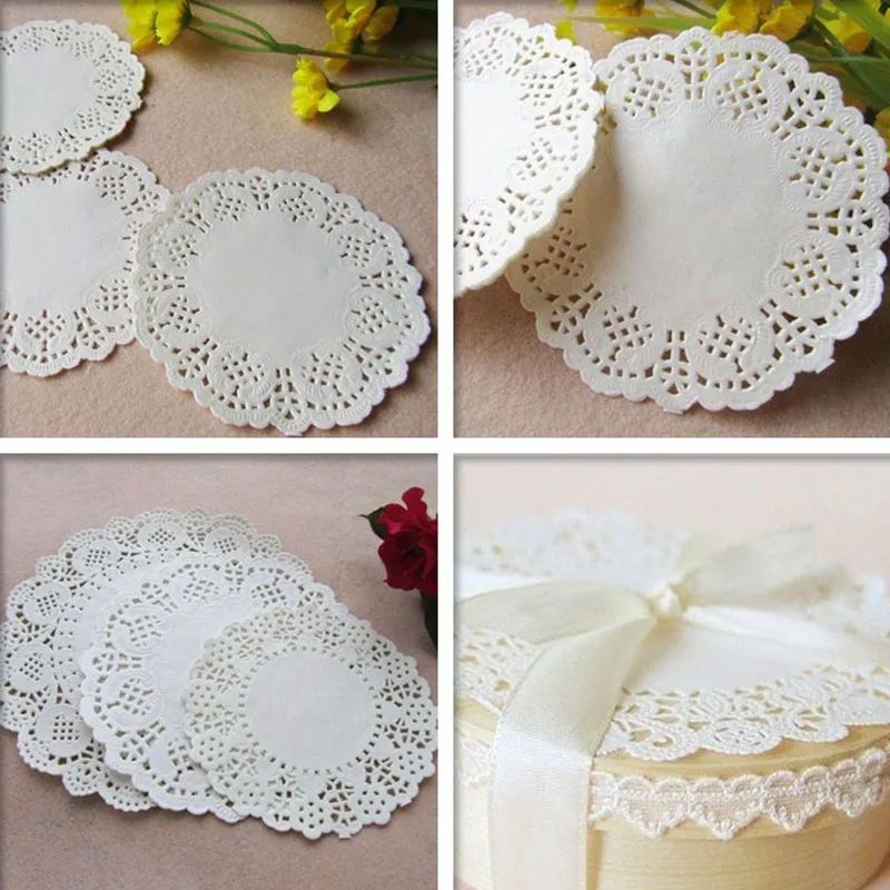 Кружевные бумажные салфетки разных размеров, 4 4,5 5,5 6,5 7,5 дюйма, настольные салфетки белых декоративных салфеток для посуды, бумажные коврики, 100 шт.