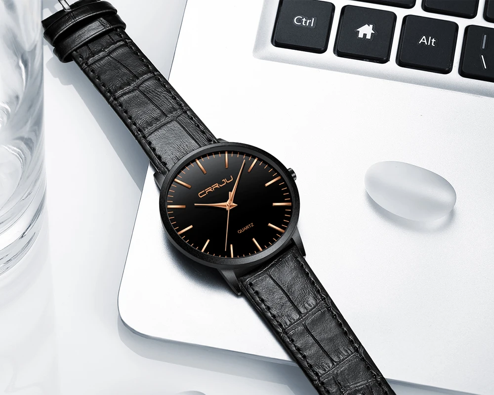Часы CRRJU Мужские кварцевые наручные, модные водонепроницаемые спортивные с тонким кожаным ремешком, подарок для мужчин