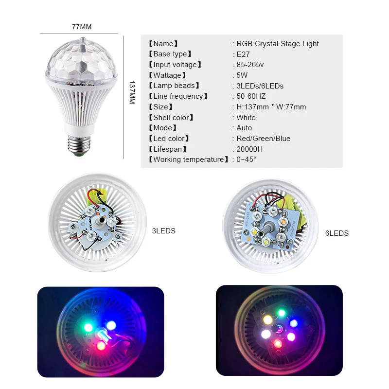 Авто вращающийся RGB Хрустальный сценический светильник 5 Вт 3 светодиодные лампы для световых сценических эффектов светильник с эффектом ing лампа для вечерние DJ диско украшение дома лампочка лазерного светильника