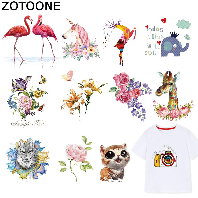 Нашивки ZOTOONE с изображением животных, фламинго, цветка, термонаклейка для одежды, футболки, термотрансферная наклейка, аксессуары сделай сам, аппликации F1