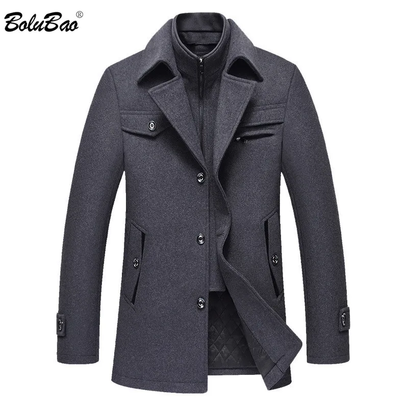 Мужское шерстяное пальто BOLUBAO, повседневное однотонное пальто из смесовой ткани, на осень и зиму, мужское шерстяное пальто
