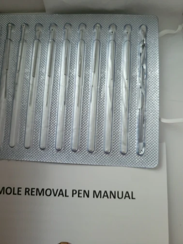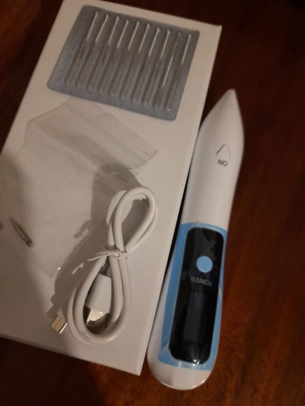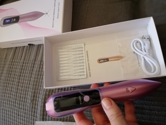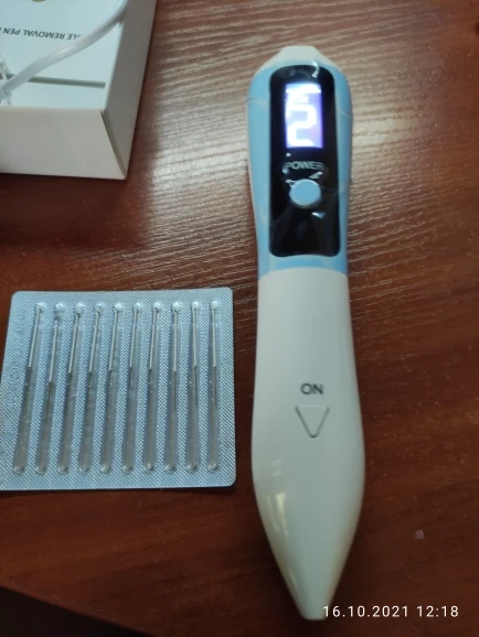 Товар рекомендую для папиллом и мелких бородавок. Всё отлично удаляет. Жду заживления. Ручка пришла заряженной. Сразу опробовала. Поучитесь сначало на мандаринке или корке лимона. Долго на одном месте не держите, медленно водите иглу, иначе можете прожечь дырку. Лучше начинать с меньшей мощности и тонкой иголкой. После заживления скину фото.