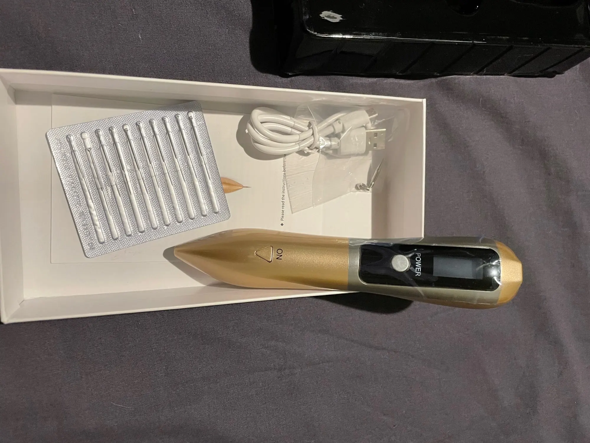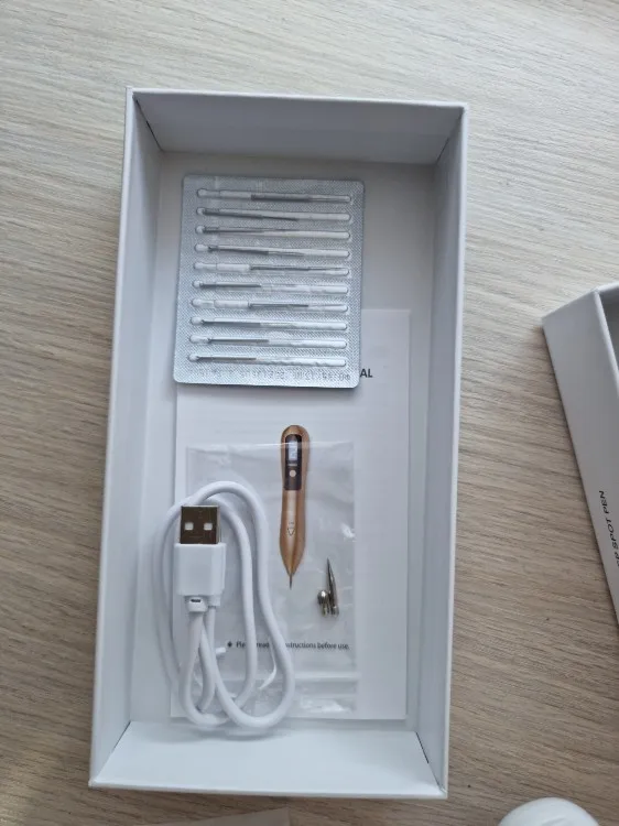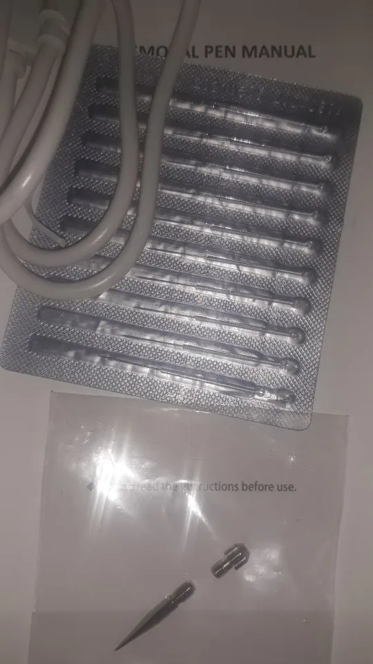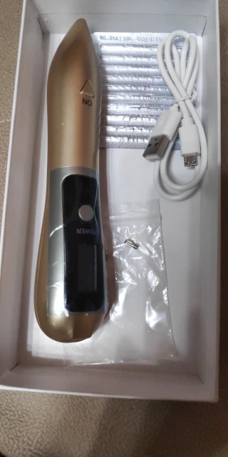 Офигенная вещь, все удалила, чуть пощипыва ет, но терпимо, пришла заряженная на половину, упаковка отличная, в Спб за 3 недели, по Рашке ползала долго посылка. Товаром очень довольна. Однозначно рекомендую, купила спиртовые салфетки и пластырь на всякий случай, пригодился) Фонарик на кончике прямо супер, всё видно)