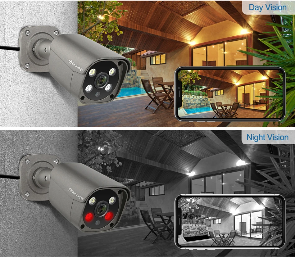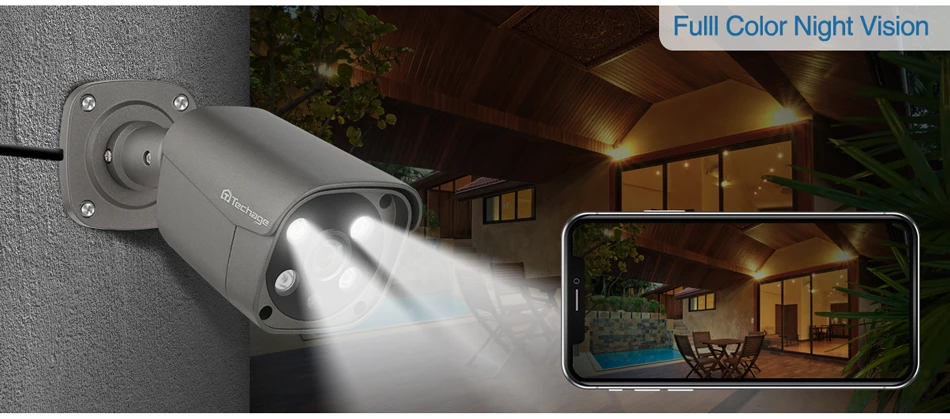 IP-камера Techage H.265 5 Мп с датчиком присутствия, наружная камера наблюдения с двухсторонним аудио и ИИ IP для системы видеорегистратора