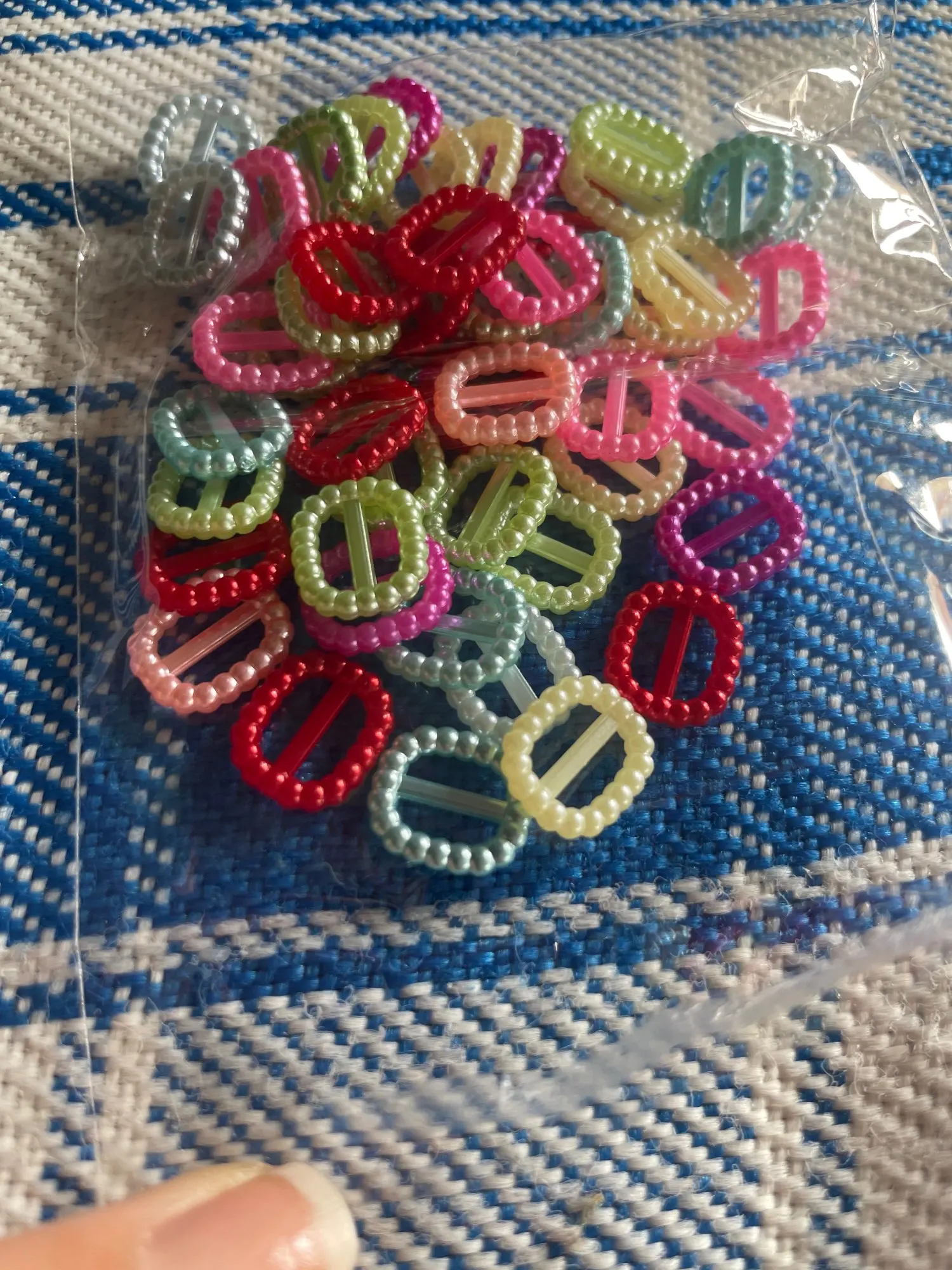 отличные маленькие пряжки!!! яркие,г качественные!!! хотелось бы чуть большего размера, но в описании дан точный размер, я не досмотрела...ровно 50 шт. доставка довольно быстрая, пришли несколько заказав в одном пакете, чуть меньше 3 недель в Тульскую область. рекомендую!!! в этом магазине есть интересные вещицы!!!