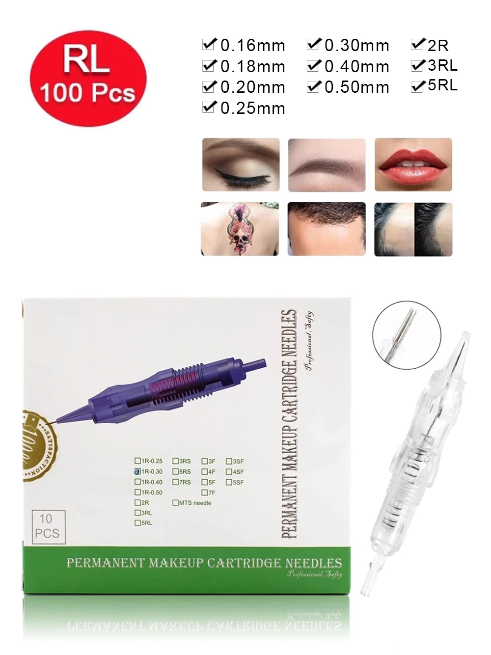 Иглы Biomaser Профессиональные с винтовыми картриджами для машинки для перманентного макияжа, 1R,2R,3RL,5RL 3RS, 100 шт.