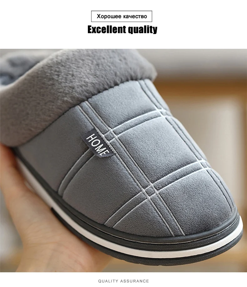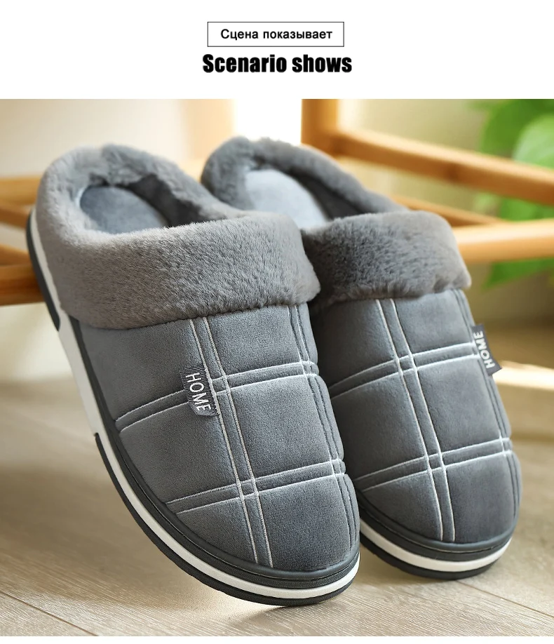 шлепанцы мужские; Мужские домашние тапочки; Размер 50; Теплые Нескользящие домашние туфли на прочной подошве для мужчин; Бархатные замшевые меховые тапочки в мелкую клетку