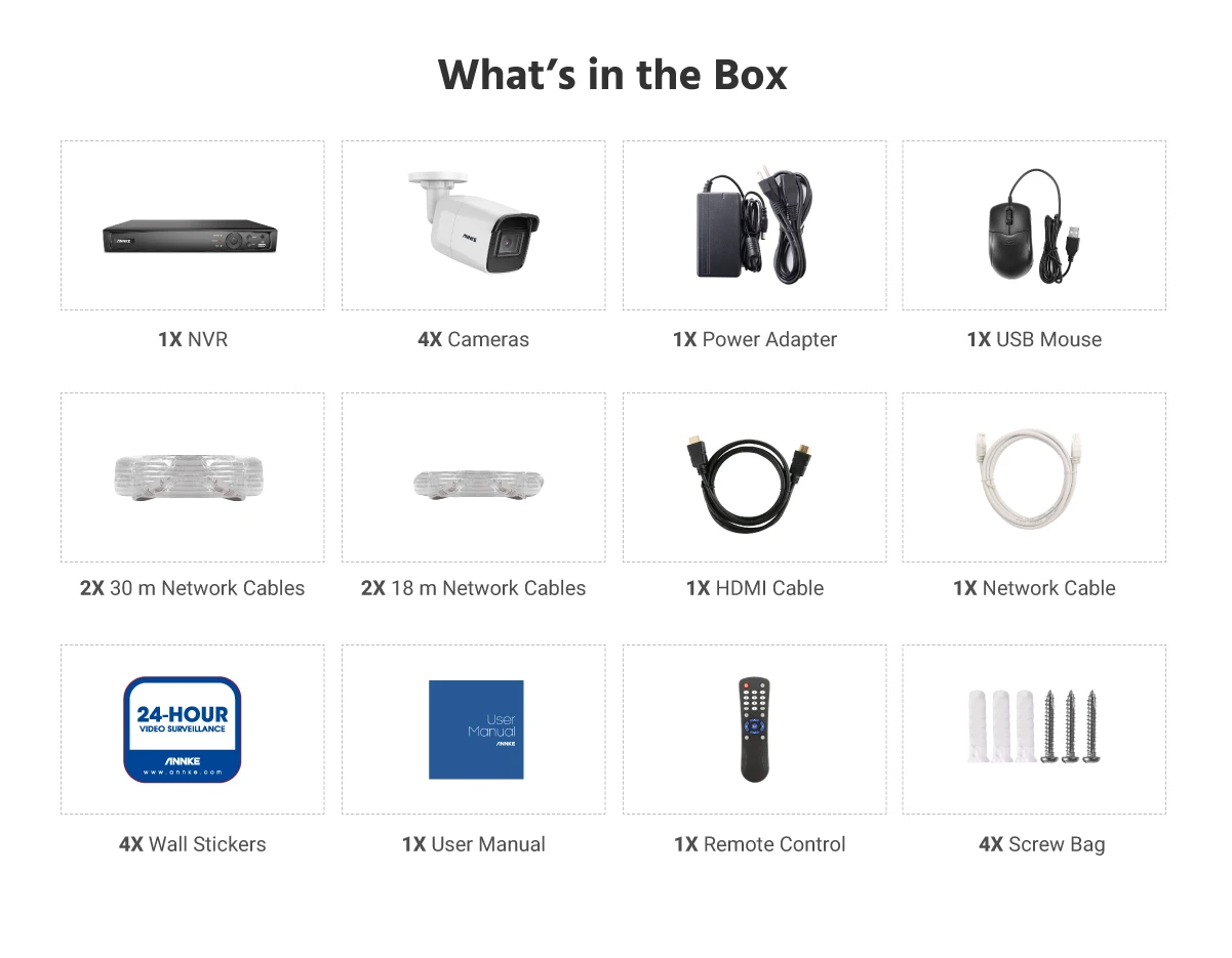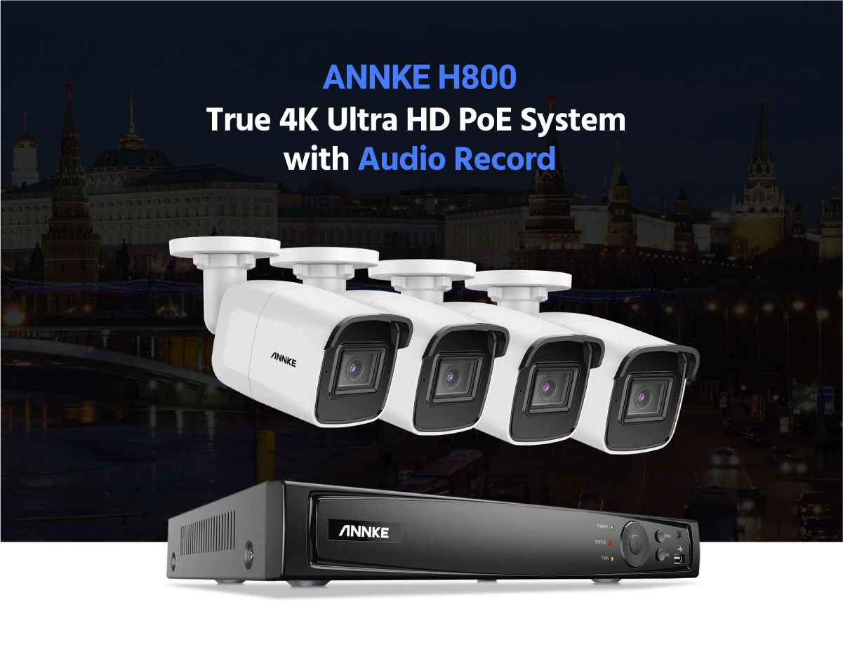 Система видеонаблюдения ANNKE, 8 каналов, 8 Мп, PoE, 4K, H.265, NVR, 4x8 Мп, HD, IP67, POE