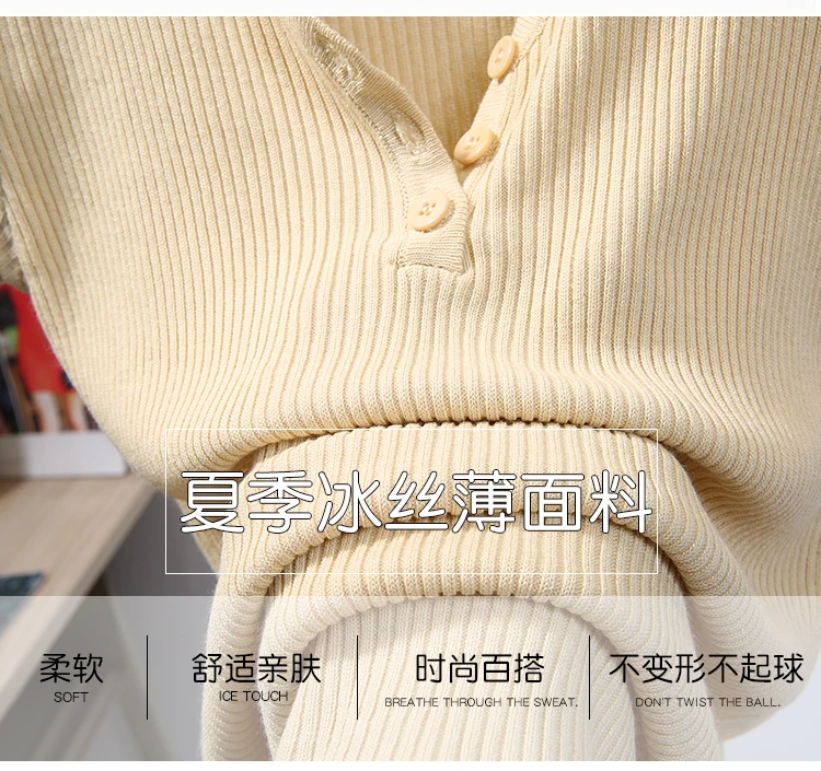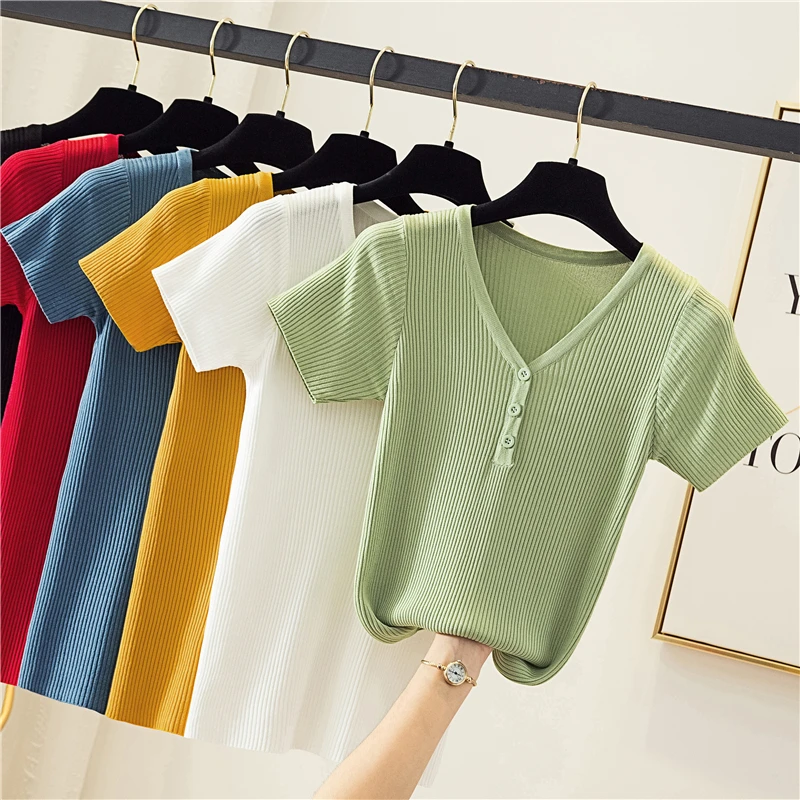 Женская трикотажная футболка на пуговицах, с коротким рукавом и V-образным вырезом