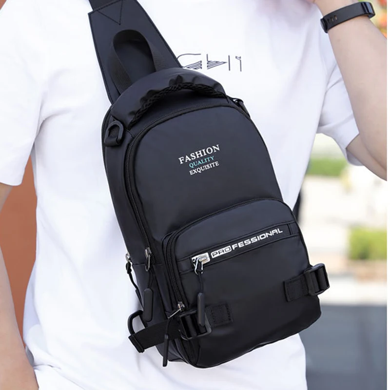 Нейлоновая нагрудная сумка через плечо для мужчин, мужская сумка-слинг с USB-интерфейсом для зарядки, повседневный модный рюкзак на одно плечо