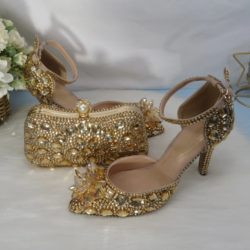 Туфли женские свадебные на высоком каблуке, со стразами, стразы