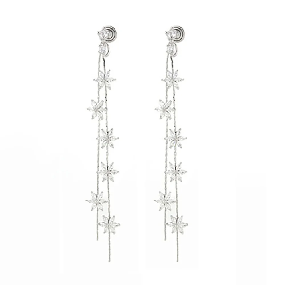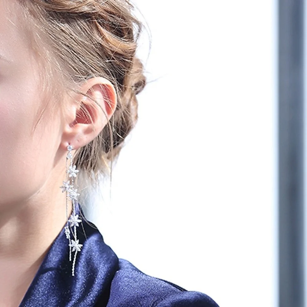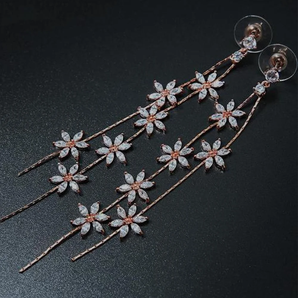 Длинные висячие серьги цветы из кубического циркония для свадьбы, свадебной вечеринки, подарок фианит, циркон, кристалл
