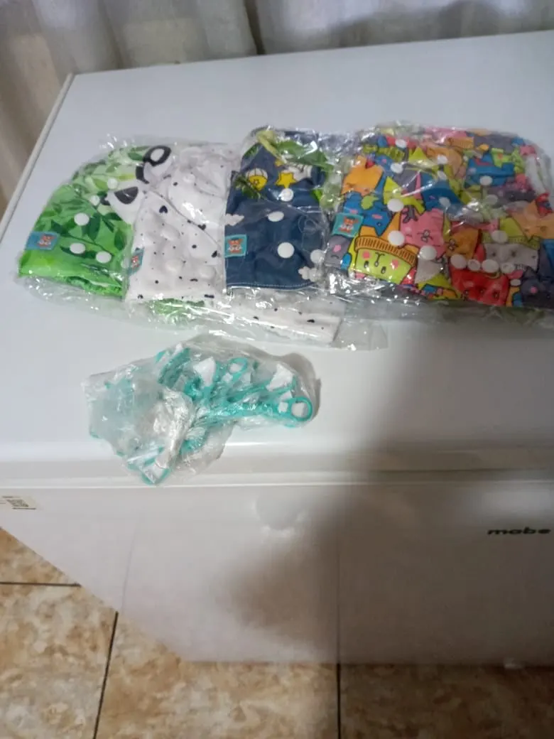 Получил подгузники в течение 2 недель. Они были в прекрасном состоянии. Это карманы, которые держат ребенка в сухости. Я не заказывал вставки, добавляя внутрь муслиновую ткань, она хорошо работает. В настоящее время они подходят для малышей весом 10 кг, 77 см с большим количеством места для роста. Сейчас протекает, пока я их проверял. Определенно рекомендую!