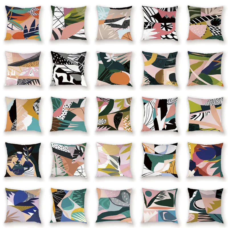 Чехлы для подушек с абстрактным рисунком, разноцветные, с розовым рисунком