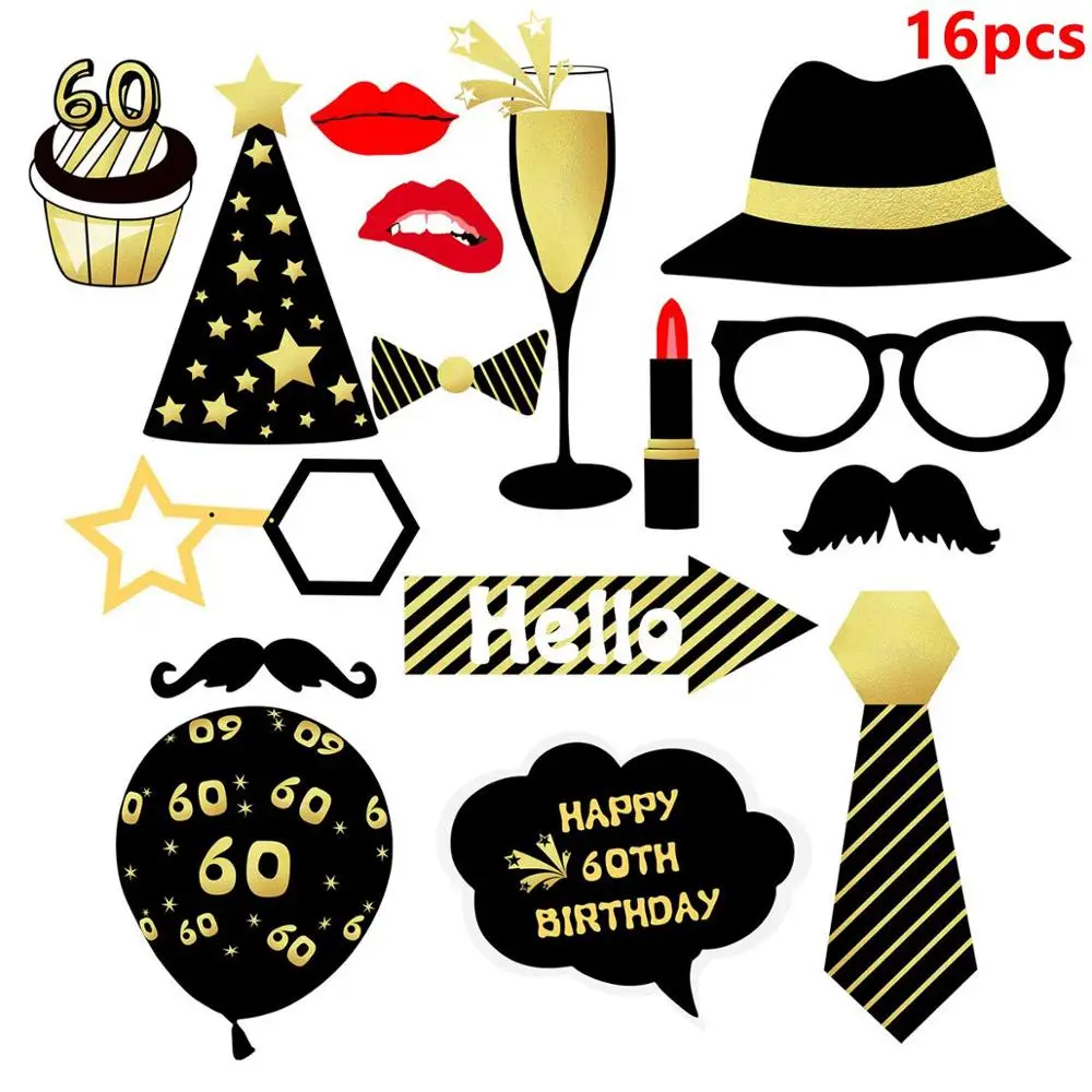 Taoup, золотистые, черные, 60th, фоточашки, тарелки, полотенца, чехол для стола, украшения для дня рождения, для взрослых, дедушек и бабушек