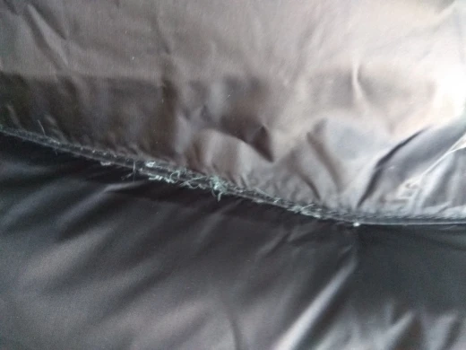 Фасон отличный, сидит хорошо, легкий и стройнит. НО ! Строчки не качественные и пух лезет из всех строчек!
