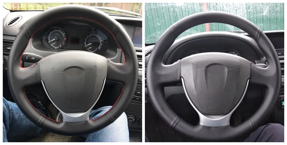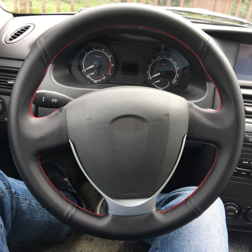 Сшитая вручную черная искусственная кожа Чехол рулевого колеса автомобиля для Лада Калина 2 2013-2018, приора 2013-2018