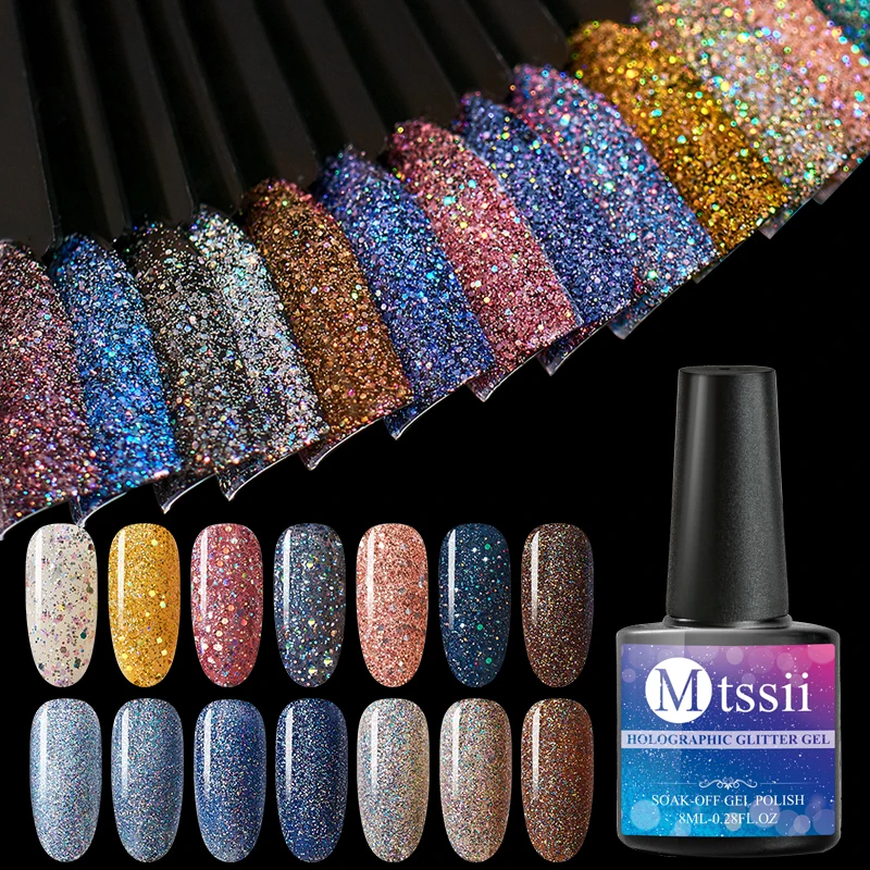 Голографический Блестящий разноцветный Блестящий лак для ногтей Mtssii 8 мл