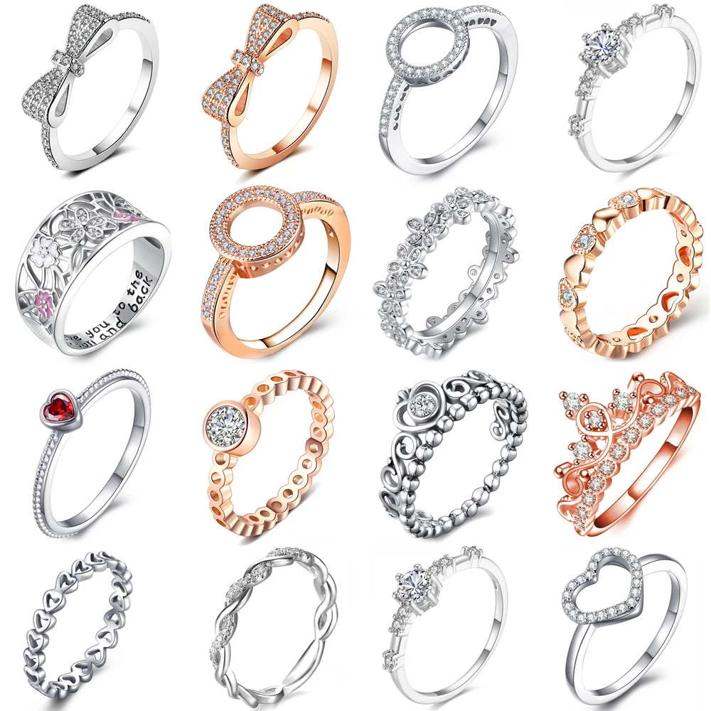 Специальное предложение, 30 стилей, серебристое кольцо на палец, штабелируемое, для вечерние, с бантом, короной, сковорода, кольцо для женщин, парные оригинальные ювелирные изделия, подарок