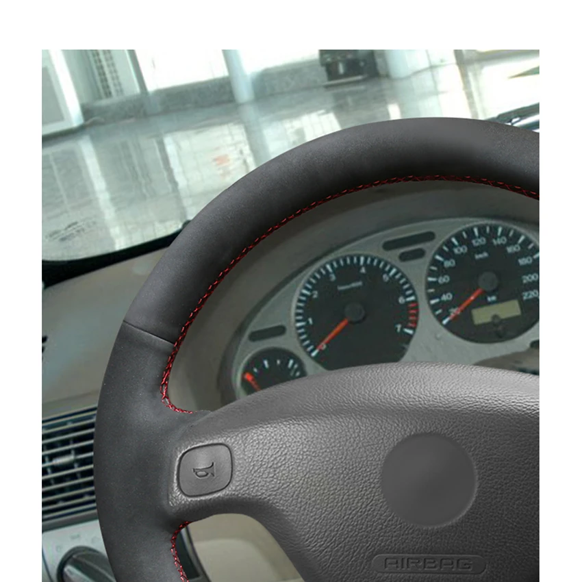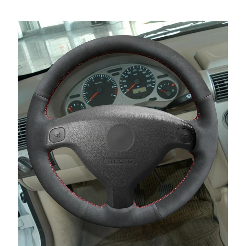 Черная замша ручная шитая противоскользящая чехол рулевого колеса а...