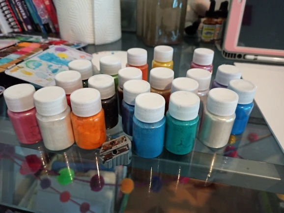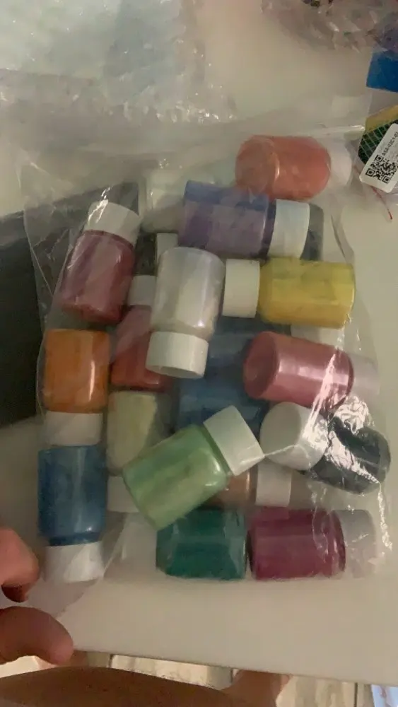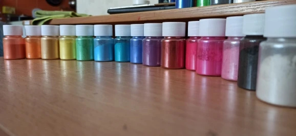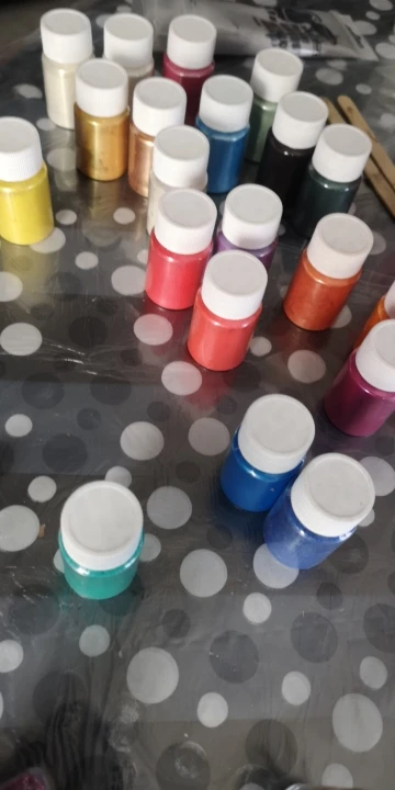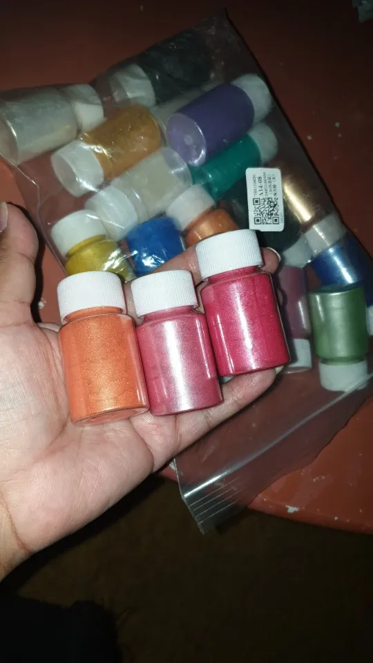 красители все как на фото, перламутровые. правда при контакте со смолой более насыщенные по цвету, но все можно пригласить белым! В целом я довольна