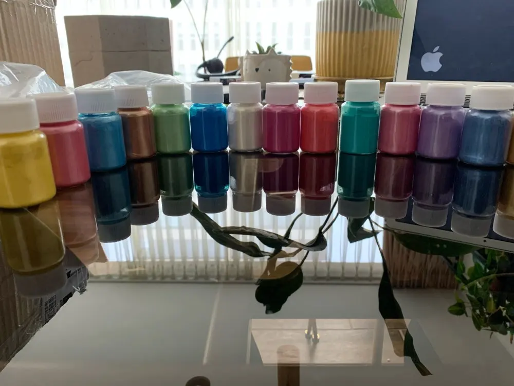 Превзошел ожидания. Отлично сочетается с эпоксидной смолой. Пигмент действительно сильный и имеет прекрасную жемчужную отделку. 120% стоит своих денег.